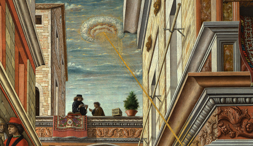 A arte medieval na Europa às vezes mostra objetos redondos e ovais voando no céu sobre cidades comuns. Alguns acreditam que são apenas simbólicos, outros que descrevem avistamentos.