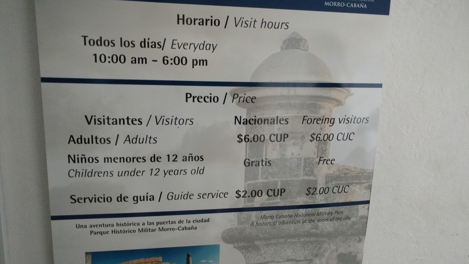 Nos museus por exemplo, eles aplicam o mesmo preço para cubanos e para estrangeiros, mas para os primeiros, em CUP e, para os segundos, em CUC. Na prática, o preço para os cubanos é 24 vezes mais barato que para os estrangeiros.