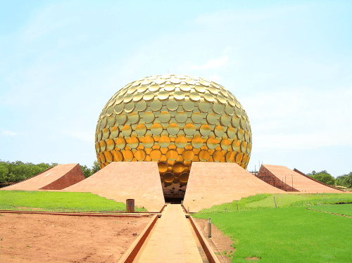 Oficialmente reconhecida como cidade pelo governo da Índia e pela Unesco, Auroville foi fundada em 1968 pelo casal Sri Aurobindo e Mirra Alfassa, ele indiano e ela francesa. No dia da inauguração da comunidade, pessoas de todos os cantos do mundo levaram terra de seus países nativos para simbolizar a união de todas as nações.