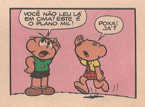 Conduzindo a conversa, Cebolinha continua: