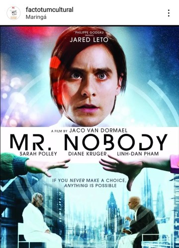 Sinopse: Marido de Elise (Sarah Polley) e pai de três filhos, Nemo Nobody (Jared Leto) leva uma vida comum ao lado de sua família. Ele acorda no ano de 2092 e agora, com 118 anos, é o último mortal em um planeta de seres humanos imortais. As suas preocupações, contudo, envolvem outras questões, como o que aconteceu durante a passagem de tempo e se viveu sua vida como gostaria.