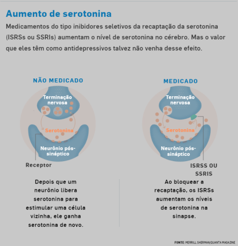 Embora os níveis de serotonina não pareçam ser o principal causador da depressão, os ISRSs mostram uma melhora modesta em relação aos placebos em ensaios clínicos. Mas o mecanismo por trás dessa melhoria continua escapando à compreensão. “Só porque a aspirina alivia a dor de cabeça, não significa que déficits de aspirina no corpo causam dores de cabeça”, disse John Krystal, neurofarmacologista e diretor do departamento de psiquiatria da Universidade de Yale. “Entender totalmente como os ISRSs produzem mudanças clínicas ainda é um trabalho em andamento”.