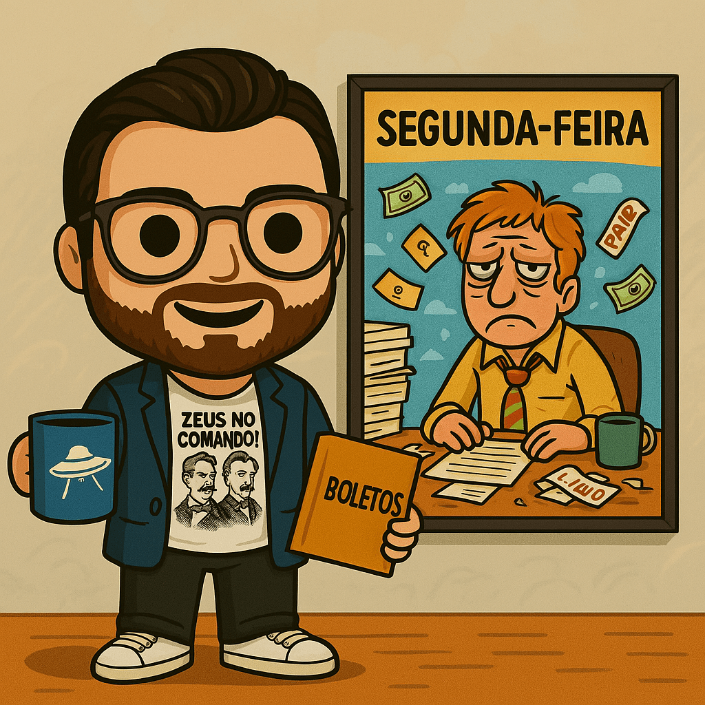 Segunda é o dia em que eu penso seriamente em largar tudo e virar monge. Mas enquanto esse momento não chega, seguimos: com Bukowski na cabeça, boletos no bolso, humor ácido na língua, e fé — não em Zeus, mas em alguma sexta-feira (ou alguma invasão alienígena) que, um dia, virá nos salvar.