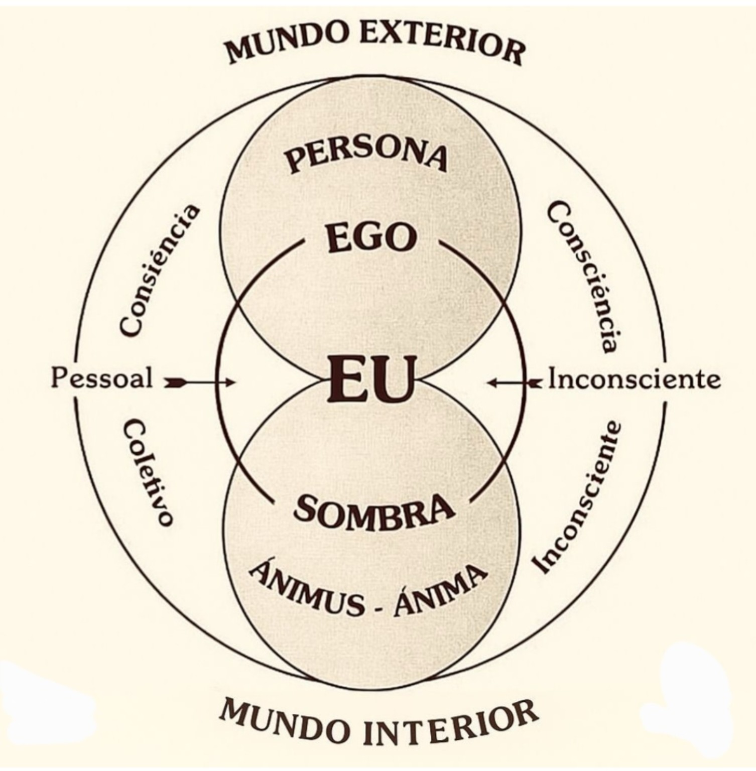 Carl Jung descreve um diagrama psicológico como um mapa interno que explora a Persona, Ego, Sombra, Ânima e Self, visando a autodescoberta e integração do ser.
