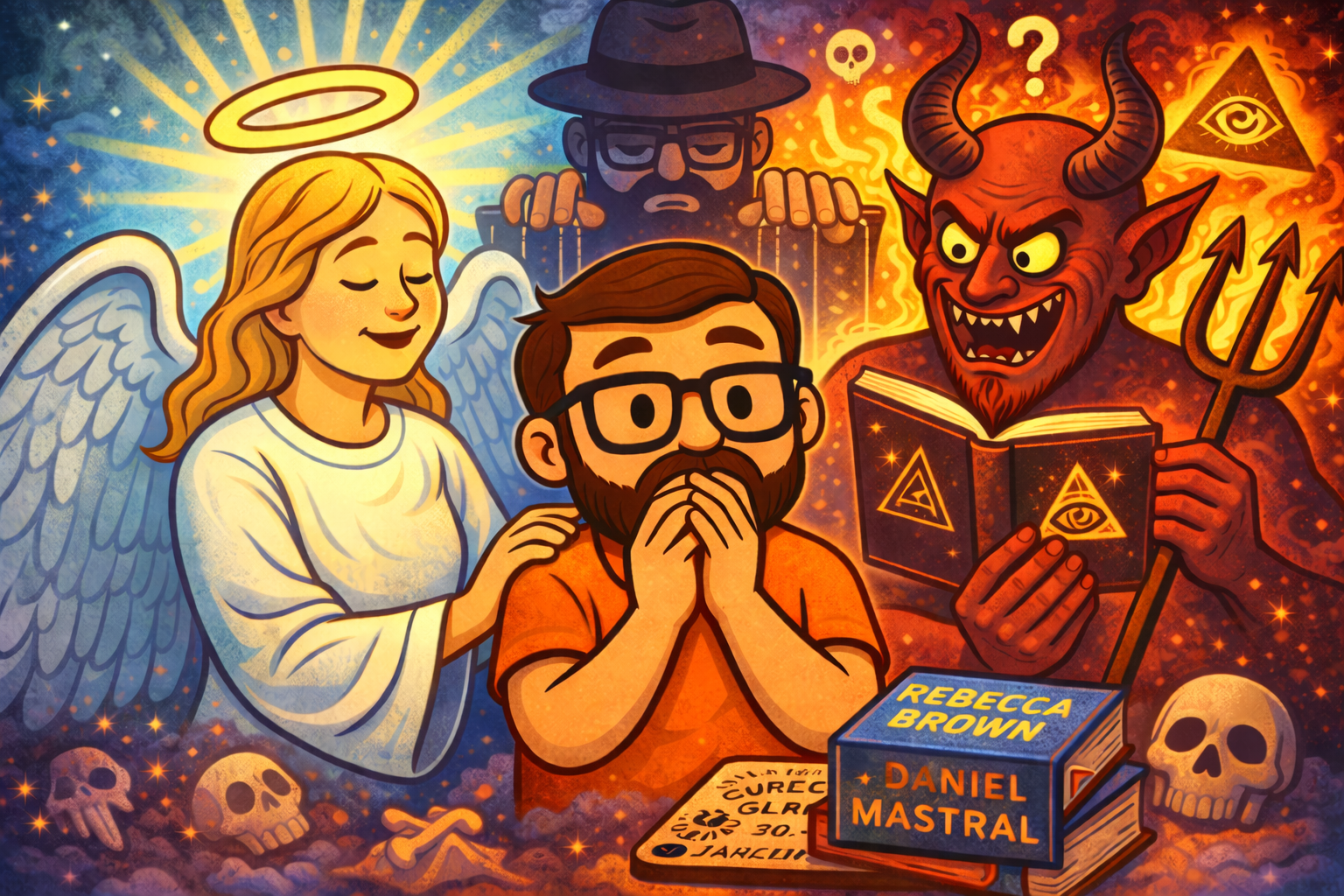 Uma crônica bem-humorada sobre guerra espiritual, teorias da conspiração e livros que marcaram os anos 2000. Memória pessoal, crítica ácida e riso sobre fé, medo e demônios imaginários.