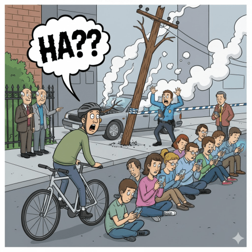 Recentemente, vivi uma sequência de eventos que desenham o diagnóstico preciso da nossa era. Tudo começou ao pegar minha bicicleta para visitar o meu pai; no trajeto, deparei-me com uma cena que é o emblema da contemporaneidade: dezenas de pessoas absolutamente distraídas, absortas nos seus smartphones enquanto a vida pulsava ao redor. Parei por um instante para observar o quanto aquele distanciamento era profundo. Ironicamente, enquanto eu observava a distração alheia, um carro invadiu o passeio e colidiu violentamente contra um poste, bem próximo à casa do meu pai. O estrondo foi enorme, mas o silêncio que se seguiu foi pior: ninguém ali, entre os pedestres conectados, foi capaz de narrar ao policial o que aconteceu. Estávamos todos lá, mas ninguém estava “presente” (MARTINO, 2014).