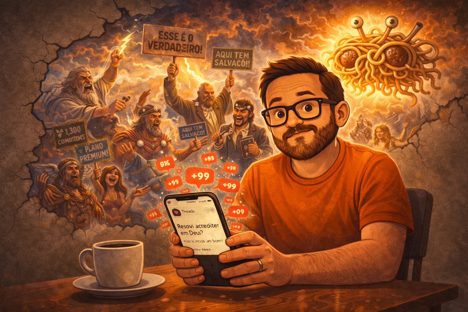 Uma pergunta irônica no Threads sobre “um bom Deus” gerou um panteão inteiro de respostas. Entre certezas, carências e convicções digitais, quem salvou a segunda-feira foi o Espaguete Voador — e o direito de rir do mistério.