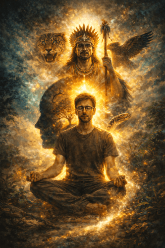 Em meados de 2023, alguns meses após minha iniciação nas medicinas sagradas, consagrando ayahuasca sozinho em casa, sentei no banheiro com o chuveiro ligado. A água caía constante, quase hipnótica, e naquele espaço de silêncio e vulnerabilidade algo inesperado aconteceu: eu me vi — ou me reconheci — como a imagem de um indígena profundamente exausto, com um cansaço antigo, profundo, quase estrutural. Não foi uma visão gloriosa. Não houve êxtase. Houve estranheza. Houve peso. Saí daquela noite sem compreender o que tinha visto.